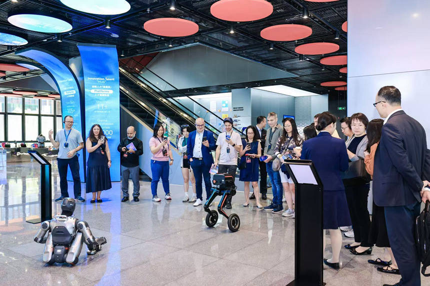 参访团现场体验人形机器人等科技创新成果。主办方供图